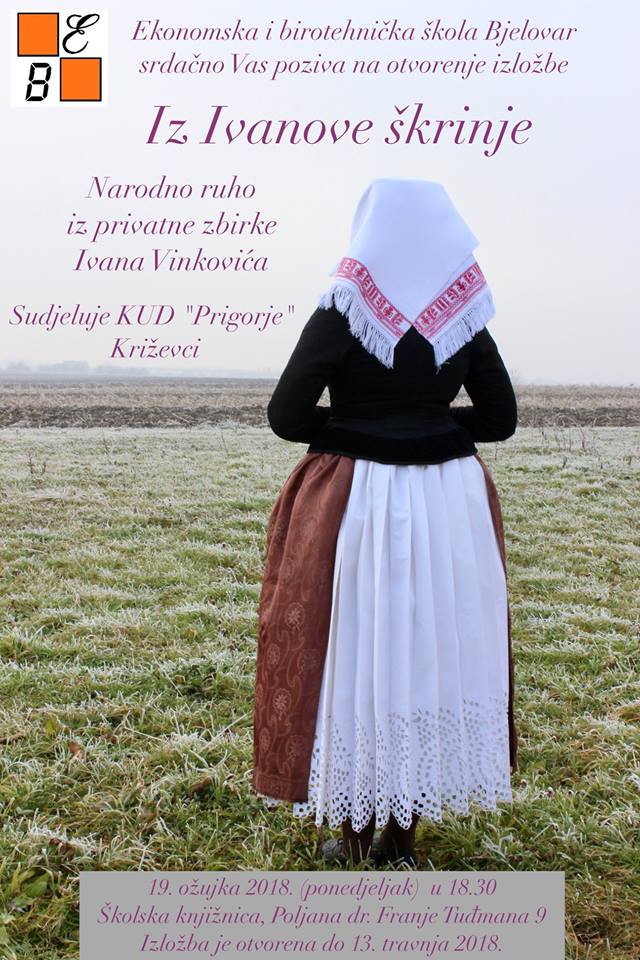 U ponedjeljak, 19. ožujka u Ekonomskoj školi u Bjelovaru, u prostoru školske knjižnice otvorena je izložba „Iz Ivanove škrinje” gdje je izloženo narodno ruho iz privatne zbirke Ivana Vinkovića. Otvorenje su uveličali i članovi KUD-a „Prigorje” koji su izveli prigodan program i podržali rad svog voditelja. Okupljenima su se obratili ravnatelj ekonomske škole te gospođa Vesna Peršić-Kovač koji su pohvalili trud i rad ovog mladog čovjeka na očuvanju baštine.